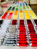 Praktisch für die Aufbewahrung von Garn sind die Kartonkärtchen von DMC. Schön nach Farben sortiert, eine wahre Augenweide.
